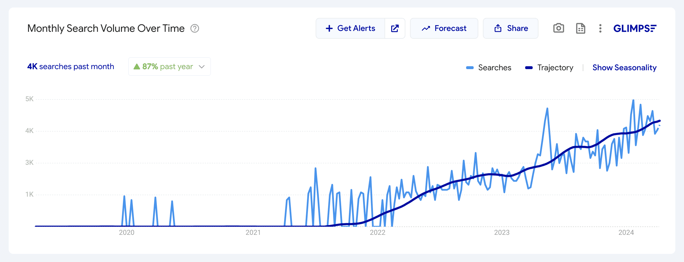 As an example, if we take a look at the search trends over the past five years for the term “Fractional CMO”, you can see that it’s been nearly doubling year on year for the last three years.